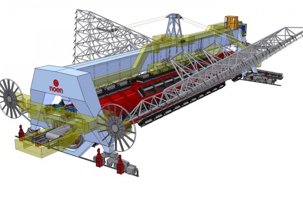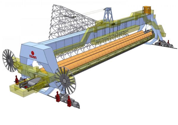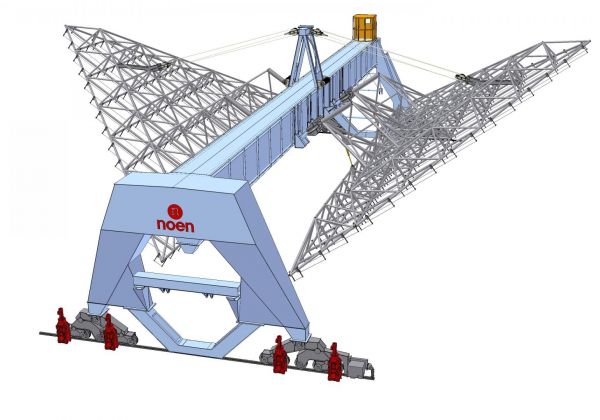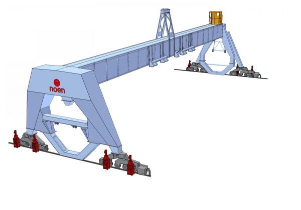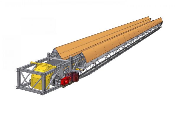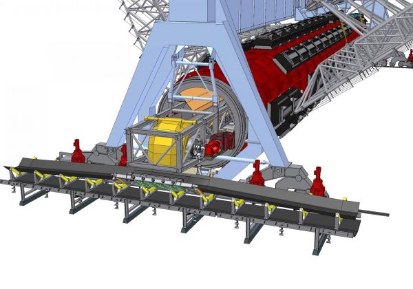 Nosná konstrukce se skládá z mostového nosníku, ke kterému jsou připojeny sloupy se systémem pohonu. Uložení mostového nosníku je tříbodové, na jedné straně dva pevné sloupy a na druhé zakotvení do sloupu pomocí axiálního ložiska. Na nosné konstrukci je připevněn buben a je na něm zavěšen systém nakládacího pásu.