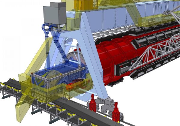 Bubnový nakladač zajišťuje kontinuální homogenizovanou dodávku uhlí, uloženého na homogenizační skládce, k navazujícímu zařízení pro nakládání materiálu na vlak.