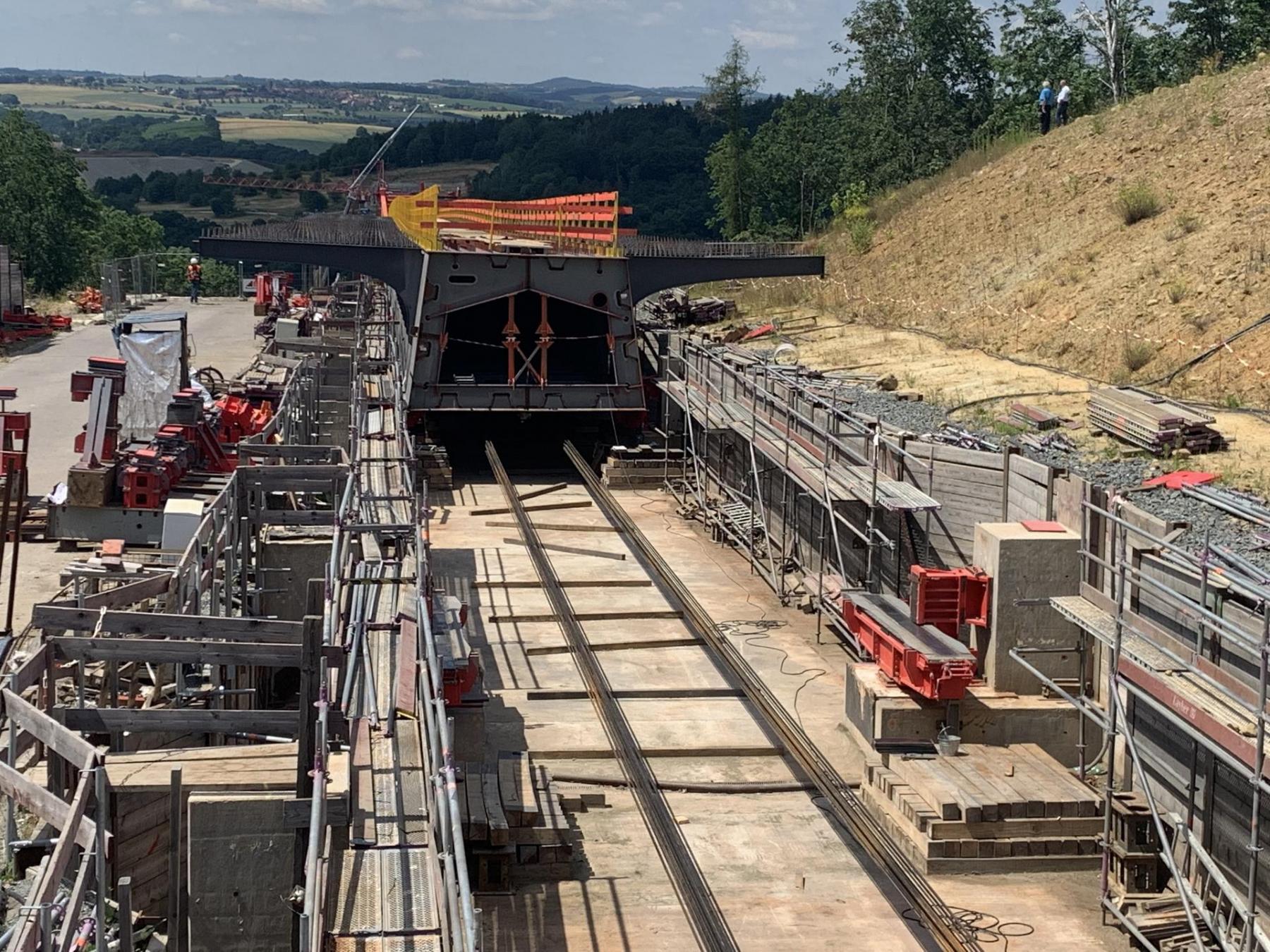 Na konci dubna proběhne výsun 4. taktu, tento takt se svařoval od ledna do března, má 120m. Po výsunu z kraje května se na uvolněné místo po taktu 4 uloží další dílce taktu 5 a započne svařování dalšího taktu.