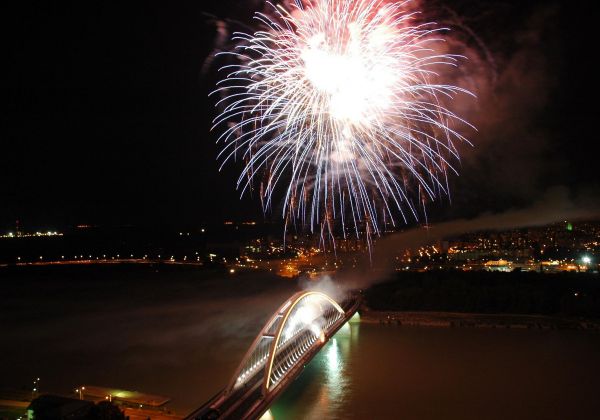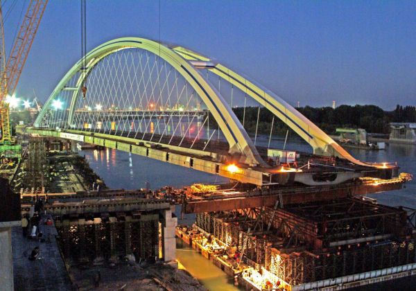 | Note: | Weight of the bridge structure: 5200 tons, main arc length: 231 m, total leght: 517 m, width: 32 m |